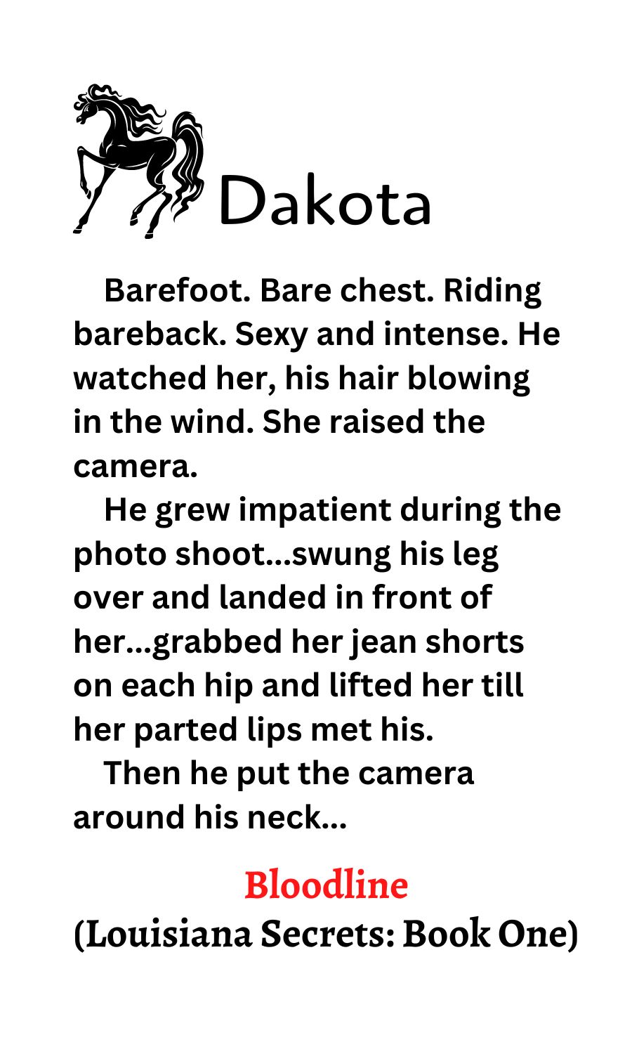 Dakota is FBI. Sexy. Native American. Undercover on the river in Lake Charles, Louisiana…watching Gabrielle. She’s beautiful. Amber eyes. Long dark hair. But she is secluded. Afraid and armed. Danger. Killers. A 200 year old secret. But Dakota is warrior on deck. She’s his.