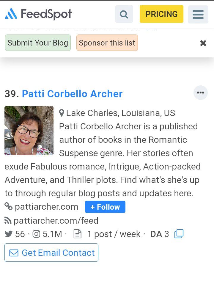 Amazon author: amazon.com/author/patticorbelloarcher.cajunlady